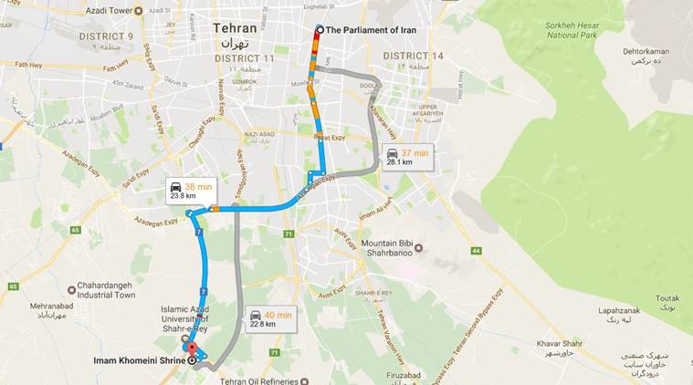 1.40 pm: Iran’s Parliament and the shrine of Ayatollah Ruhollah Khomeini are less than 45 minutes away.