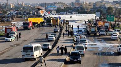 An unverified video shared on social media showed an evacuation of passengers from the plane sitting in the middle of a highway in Mahshahr.