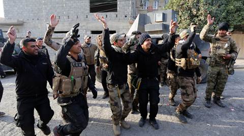 Iraqi Special Operations Forces (ISOF) shout slogans during battle with Islamic State militants east of Mosul, Iraq. (Source: Reuters)