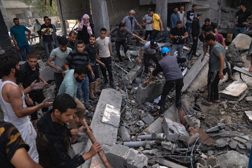 Palestinians look for survivors in a building destroyed in Israeli bombardment in Rafah refugee camp in Gaza Strip on Tuesday, Oct. 17, 2023. (AP Photo/Fatima Shbair)A Palestinian woman reacts at the site of Israeli strikes on houses, in Rafah in the southern Gaza Strip October 17, 2023. REUTERS/Ibraheem Abu Mustafa Palestinians carry a wounded man following Israeli strikes on houses in Rafah in the southern Gaza Strip October 17, 2023. REUTERS/Ibraheem Abu Mustafa An Israeli soldier inspects a house damaged by Hamas militants in Kibbutz Be'eri, Israel, Tuesday, Oct. 17, 2023. The kibbutz was overrun by Hamas militants from the nearby Gaza Strip on Cot.7, when they killed and captured many Israelis. (AP Photo/Ariel Schalit)Smoke rises following an Israeli airstrike in Rafah, southern Gaza Strip, Tuesday, Oct. 17, 2023. (AP Photo/Hatem Ali)Mourners attend the funeral of Israeli soldier Amitai Zvim, killed by the Hamas militants, at the Mount Herzl cemetery in Jerusalem on Monday, Oct. 16, 2023.(AP Photo/Petros Giannakouris