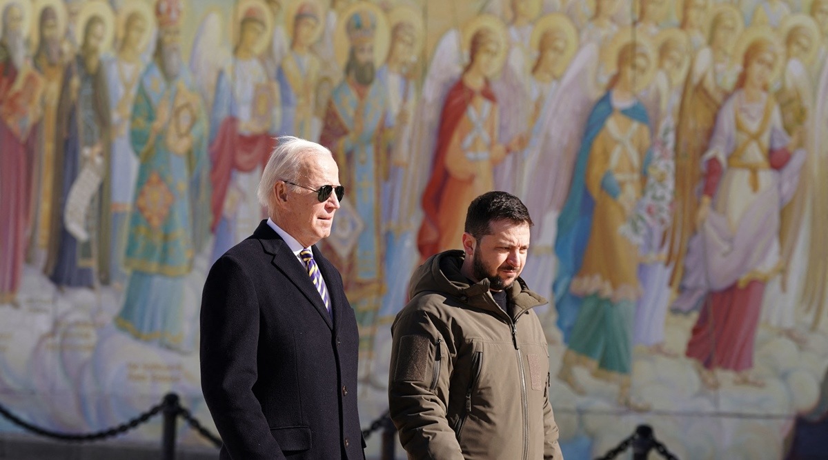After touching down in Poland, the president embarked on a 700-odd kilometers journey by train and arrived in Kyiv at 8 am local time (1 am Washington time, 11.30 am Indian time) wearing a blue and yellow striped tie, the colours of the Ukrainian flag.