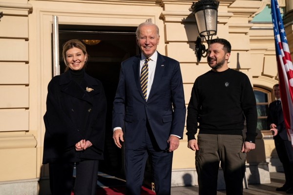 He was greeted by Zelenskyy in his signature green military fatigues and his wife, Olena. “Thank you for coming,” Zelenskyy said as he shook Biden’s hand.