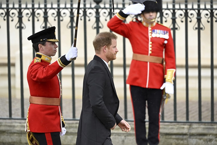 Prince Harry Saturday arrived at Westminster Abbey for the coronation of his father King Charles III. He joined his cousins, aunts and uncles before the more senior members of the royal family entered.