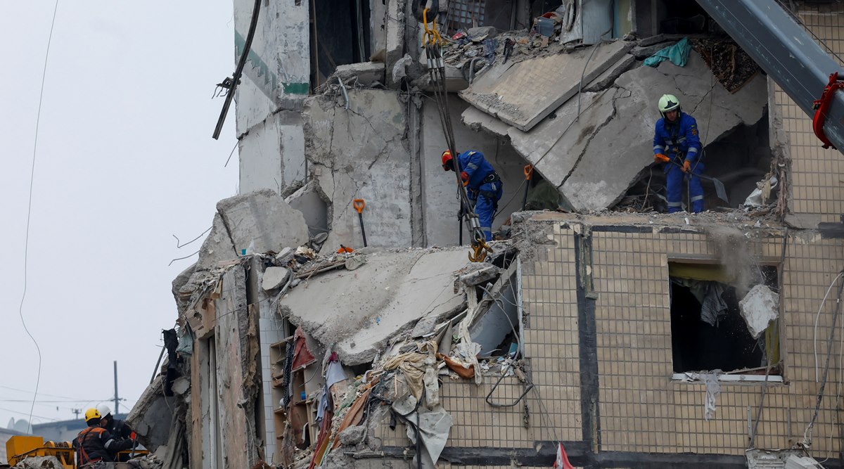 Emergency personnel work at the site where an apartment block was heavily damaged by a Russian missile strike in Dnipro, Ukraine. (Reuters) The Kremlin said on Monday that Russian forces did not strike residential buildings in Ukraine, two days after an apartment complex in the city of Dnipro was hit during a major Russian missile attack that Kyiv says killed at least 36 people.