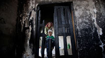 Mohammed Abdelkarim, whose mother and sisters were inside the house when it was set alight, says Hebrew slogans were scrawled on the house.