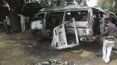 “I can see blood splattered everywhere, including my car, but I can’t give any detail because we are all running,” bread seller Ayuba Dan Mallam said shortly after Thursday night’s blast.