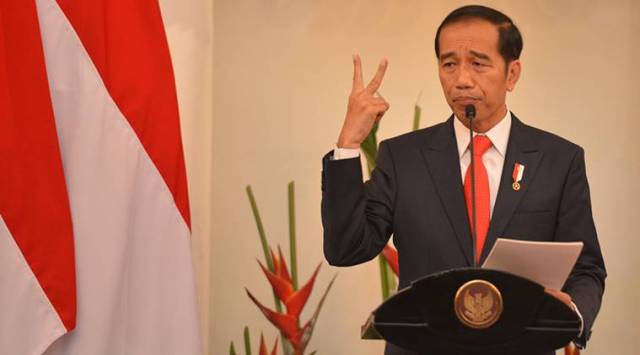 Indonesian President Joko Widodo delivers a speech at Foreign Ministry office in Jakarta, Indonesia, February 12, 2018. Antara Foto/Wahyu Putro/ via REUTERS ATTENTION EDITORS – THIS IMAGE WAS PROVIDED BY A THIRD PARTY. MANDATORY CREDIT. INDONESIA OUT.