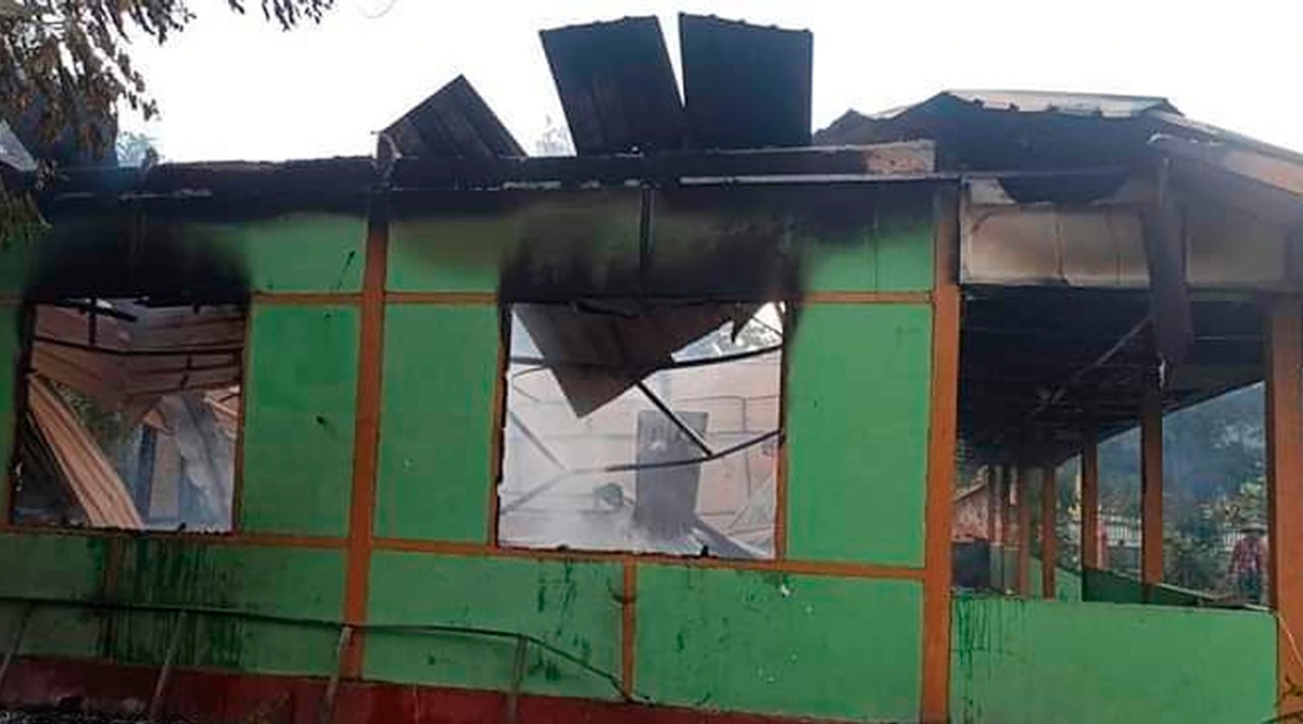 According to witnesses’ descriptions and photos taken in Taung Myint village in the rural Magway region, the headless body of 46-year-old Saw Tun Moe was left on the ground in front of the school’s spiked gate and his head was impaled on top of it. The school, which has been closed since last year, was also burned.
