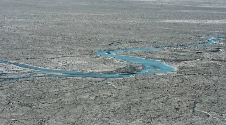 In this image taken on Thursday Aug.1, 2019 large rivers of melting water form on an ice sheet in western Greenland and drain into moulin holes that empty into the ocean from underneath the ice. The heat wave that smashed high temperature records in five European countries a week ago is now over Greenland, accelerating the melting of the island’s ice sheet and causing massive ice loss in the Arctic. (Photo via Caspar Haarløv, Into the Ice via AP)