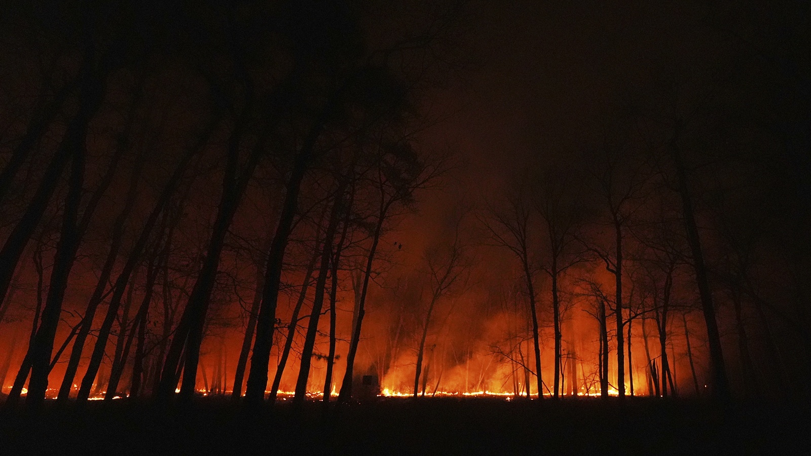 A fire burns near Waretown, N.J. (AP Photo/Chris Szagola)