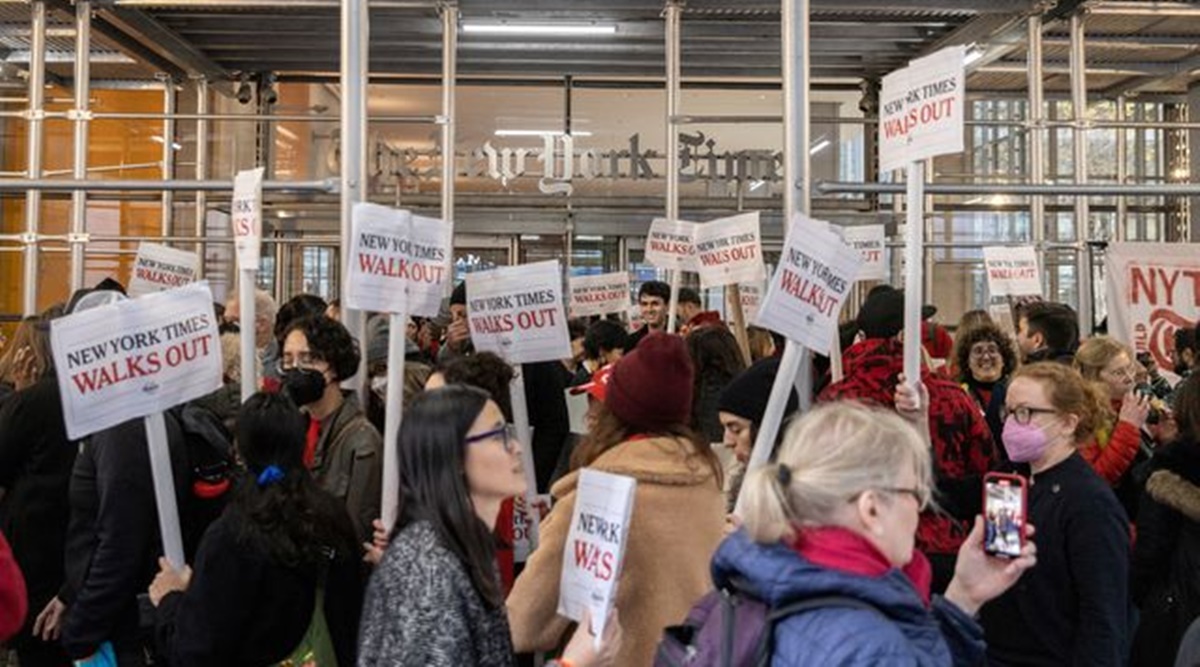 Hundreds of reporters, editors, photographers and other employees picketed outside the newspaper’s offices near Manhattan’s Times Square. With a hollowed out newsroom, the Times was relying on international and non-union staffers to deliver content to its more than 9 million worldwide subscribers until the strike ends.