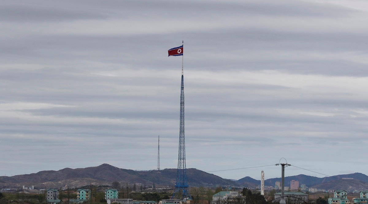 A North Korean flag flutters in the wind atop a 160-meter tower in North Korea's village Gijungdongseen, as seen from the Taesungdong freedom village inside the demilitarized zone in Paju, South Korea. (AP) North Korea fired a long-range ballistic missile toward the sea off its east coast on Saturday, after Pyongyang warned of a strong response to upcoming U.S.-South Korea military drills.