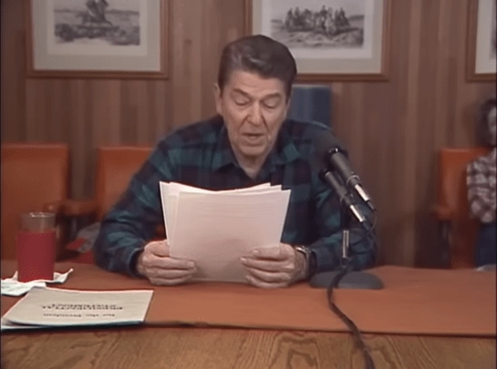 The ad featured excerpts from a 1987 national radio address in which Reagan said tariffs “hurt every American”.