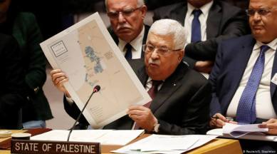 At the UN on Tuesday, Abbas showed a large map of Israel and Palestine under the terms of the plan and said that the future Palestinian state would look like “Swiss cheese” — notorious for having holes in it.