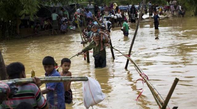 Several Rohingya camps in this coastal city are flooded from three days of unrelenting rains. People in the camps were being pelted with heavy rain Wednesday while desperately packing their meagre belongings into plastic sacks and bits of clothes and trying to find new shelter