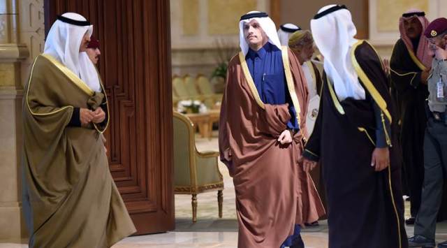 Qatar’s foreign minister Sheikh Mohammed bin Abdulrahman al-Than arrives to attend a meeting of foreign ministers of the Gulf Cooperation Council (GCC) in Bayan Palace, in Kuwait City, Kuwait, December 4, 2017. REUTERS/Assad Hani