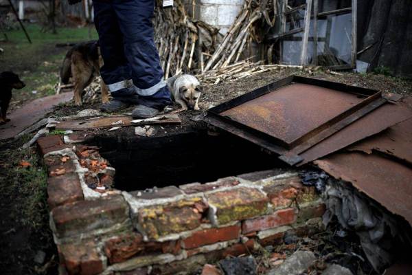 Ivan Mishenko stands next to the entrance to a cellar at his house, where he said he found three burned bodies that could not be identified, amid Russia’s attack on Ukraine, in the village of Husarivka, in Kharkiv region, Ukraine, April 14, 2022. Picture taken April 14, 2022. (Photo: REUTERS)