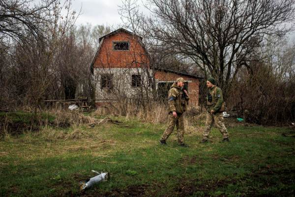 Some of the invading Russians said they were on a training exercise or there to clear Ukraine of bandits and “Nazis”, she added, standing on a patch of ground near her house.