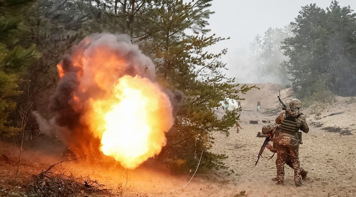 Ukrainian servicemen from the Volyn Territorial Defence brigade attend an exercise near the border with Belarus, amid Russia's attack on Ukraine, in Volyn region, Ukraine, Jan, 12, 2023. (Reuters) Ukraine said its troops were holding out against pro-Moscow forces in the eastern salt mining town of Soledar as more than 500 civilians including children were trapped there.