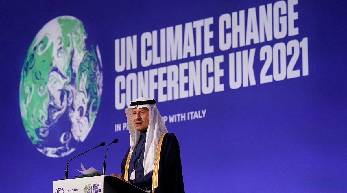 Saudi Arabia's Minster of Energy Prince Abdulaziz bin Salman Al Saud speaks at the COP26 UN Climate Summit in Glasgow. (AP)