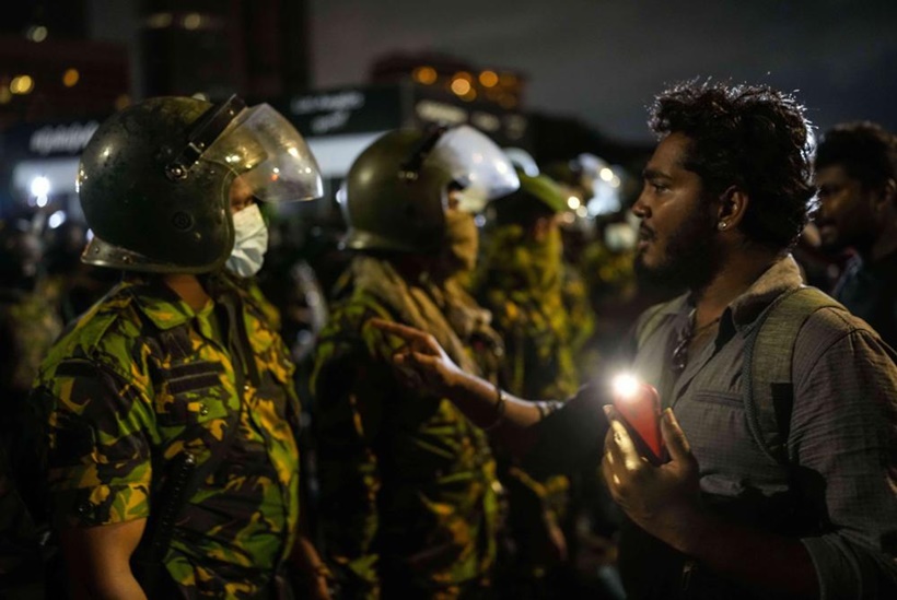 Army and police personnel arrived in trucks and buses around midnight, removing tents and protest banners at the site near the presidential palace in the capital, Colombo, where demonstrators have gathered for the past 104 days. They blocked off roads leading to the site and carried long poles. The security forces were witnessed beating up at least two journalists.