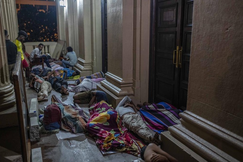 Protesters sleep before being removed from the site of a protest camp inside the Presidential Secretariat in Colombo, Sri Lanka on July 22, 2022. Photo via Associated Press.