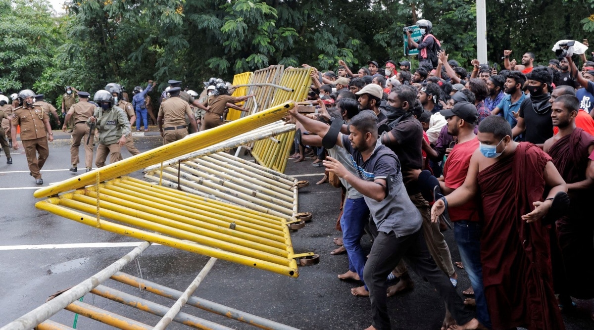 Demonstrators pull down metal barriers as they try to enter the main road towards the parliament during a protest against Sri Lankan President Gotabaya Rajapaksa near the parliament, amid the country’s economic crisis in Colombo, Sri Lanka, April 8, 2022. REUTERS/Dinuka Liyanawatte