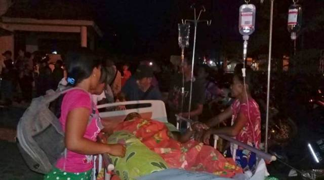 Patients are evacuated from a hospital following a strong earthquake in Poso, central Sulawesi, Indonesia. (AP)