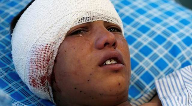 An injured boy receives treatment inside a hospital, after a suicide attack at a checkpoint near the main cricket stadium, in Kabul, Afghanistan September 13, 2017. Reuters
