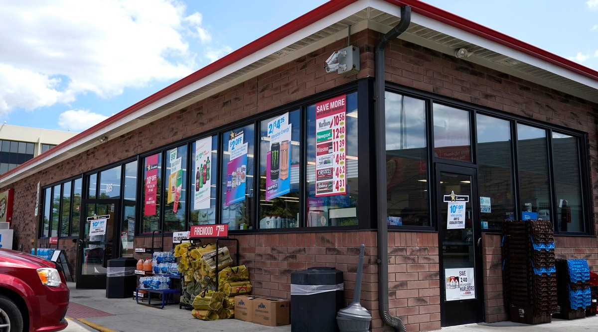 Vehicles are parked outside the Illinois Speedway gas station in Des Plaines, Ill., where the winning Mega Millions lottery ticket was sold, Saturday, July 30, 2022. A ticket-holder in the state clinched the $1.337 billion Mega Millions jackpot from the ticket was sold there. (AP)