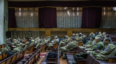 They came for a nearly two-hour lecture sponsored by the Territorial Defense Forces on likely plans of attack on Kyiv — including armored columns rolling in on highways or paratroopers seizing the airport — by Lt. Yuri Matviyenko, a former Ukrainian military attaché to Israel.