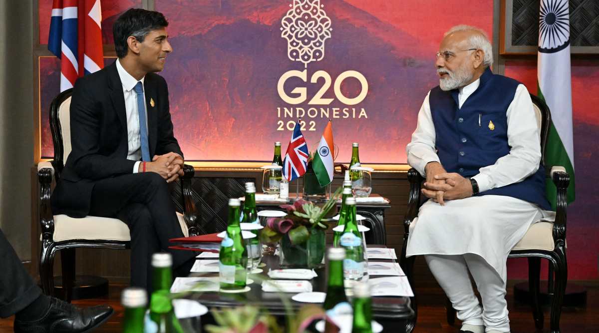 British Prime Minister Rishi Sunak and India's Prime Minister Narendra Modi hold a bilateral meeting on November 16, 2022 in Nusa Dua, Indonesia. (Photo: REUTERS)