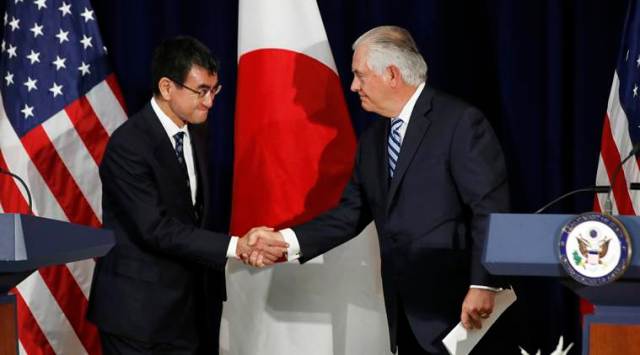 Tillerson said they discussed their concern about the security environment in the East China Sea and South China Sea. “The United States and Japan oppose any unilateral action that seeks to undermine Japan’s administration of the Senkaku Islands, and we reaffirmed that Article 5 of the US-Japan Security Treaty covers these islands. We also oppose militarisation activity in the South China Sea,” he said.