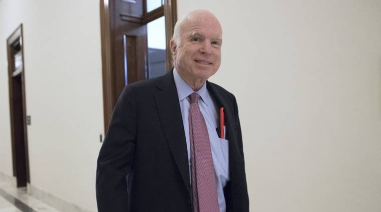 FILE – In this Sept. 5, 2017, file photo, Sen. John McCain, R-Ariz., walks from his Senate office as Congress returns from the August recess in Washington. The Senate has overwhelmingly approved a sweeping policy bill that would pump $700 billion into the military, putting the U.S. armed forces on track for a budget greater than at any time during the decade-plus wars in Iraq and Afghanistan. (AP Photo/J. Scott Applewhite, File)