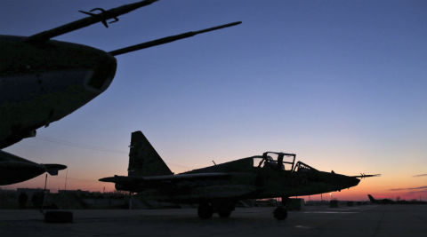 Russian Su-25 ground attack jets are parked after returning from Syria, at a Russian air base in Primorsko-Akhtarsk, southern Russia, Wednesday, March 16, 2016.(Olga Balashova/Russian Defense Ministry Press Service via AP)