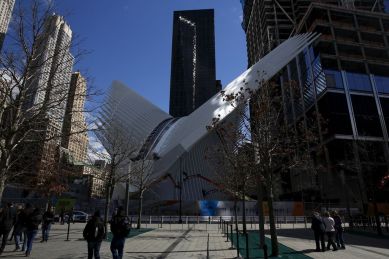 The building, designed by Spanish-Swiss architect Santiago Calatrava and called Oculus, is a giant oval made up of steel ribs and glass laid out in elliptical shape, reaching for the sky like wings of a bird.