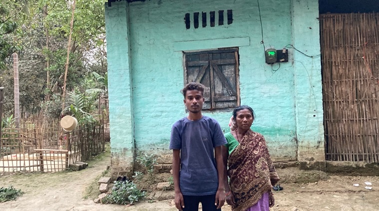 Appu Garaik and his mother Hasina, who is a worker at the Nudwa tea garden Dibrugarh district, pose for a photograph (Express Photo: Abhishek Saha)