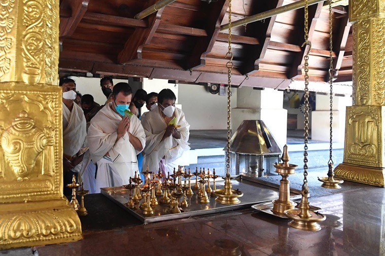 Congress leader Rahul Gandhi kicked off Day 2 of his Kerala campaign trail on Sunday by offering prayers at Thirunelli Temple in Wayanad. Gandhi is set to hold a road show in Kozhikode later in the day.