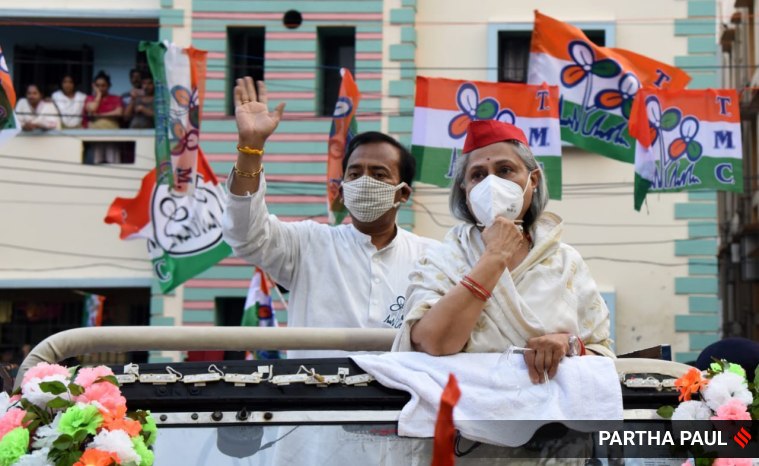 Samajwadi Party MPJaya Bachchan came to Kolkata to attend a rally in support of Trinamool Congress candidate Aroop Biswas for the ongoing Assembly Eklections in West Bengal.