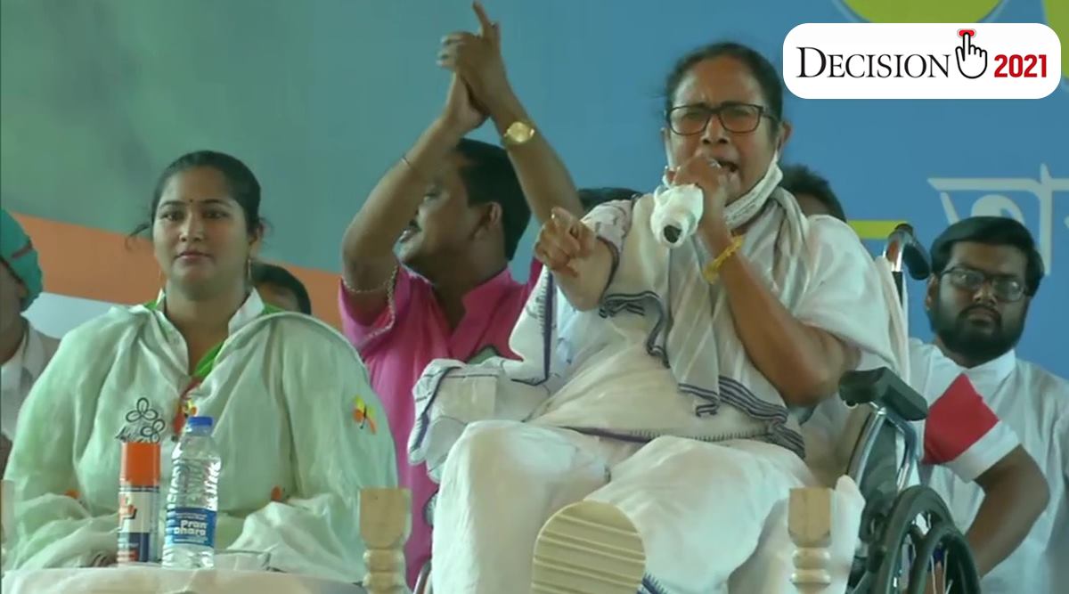Addressing a rally in Hooghly, West Bengal Chief Minister Mamata Banerjee on Monday expressed confidence on her win in Bengal, saying, “I will win Bengal on one leg and in the future, will get victory in Delhi on two legs.”