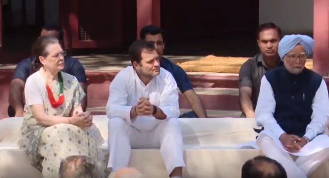 Congress chief Rahul Gandhi, UPA chairperson Sonia Gandhi and former PM Manmohan Singh.