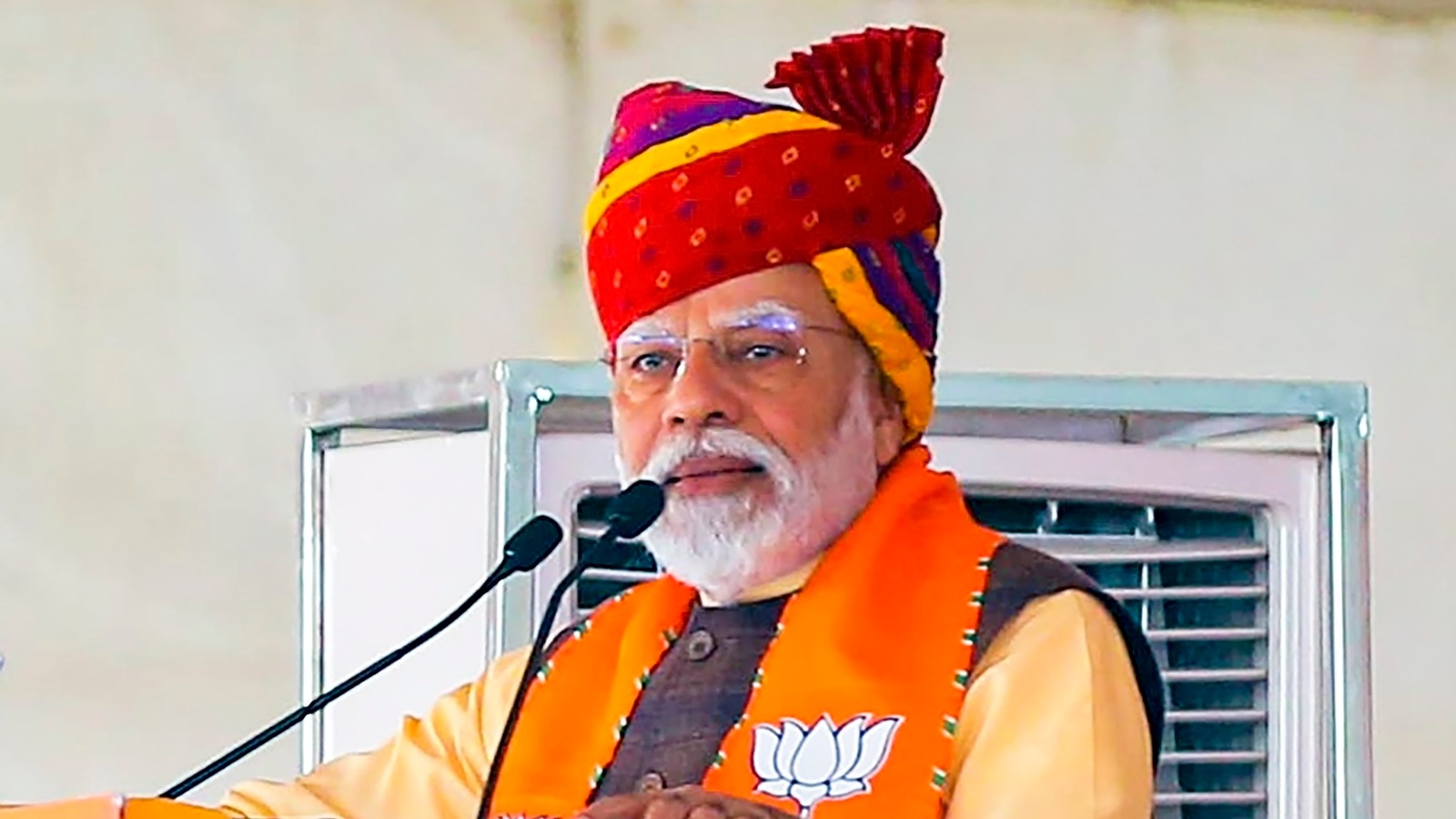 Prime Minister Narendra Modi speaks during a public meeting ahead of Rajasthan Assembly elections, in Sagwara, Wednesday, Nov. 22, 2023. (PTI Photo)