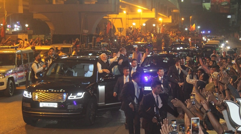 Prime minister Narendra Modi holds roadshow in Surat on Sunday evening. (Express photo by Hanif Malek)