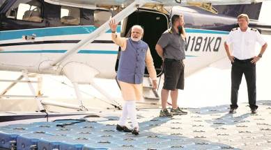 Landing between Sardar and Ellis Bridge, Modi waved at the people from his seaplane as he campaigned along the Riverfront. Even after alighting the seaplane, he stepped out on the pedestal of his vehicle and waved at his supporters as it paced off slowly for the next 200 metres.