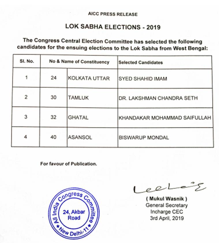 The Congress party on Wednesday released a list naming one candidate in Odisha for Lok Sabha Elections and 9 candidates for state legislative assembly elections.