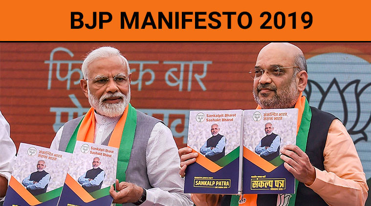 PM Narendra Modi and BJP president Amit Shah releasing party’s manifesto. (Express Photo by Neeraj Priyadarshi)