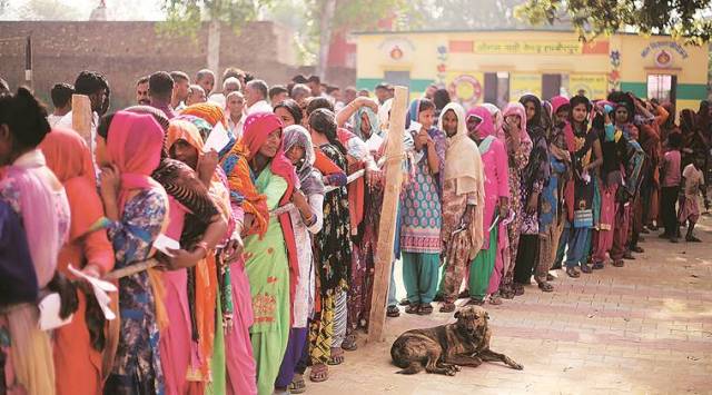 Lok Sabha Elections Results 2019 Date: People lined up to vote in Shabbirpur village, Saharanpur, Uttar Pradesh. (Express photo by Tashi Tobgyal)