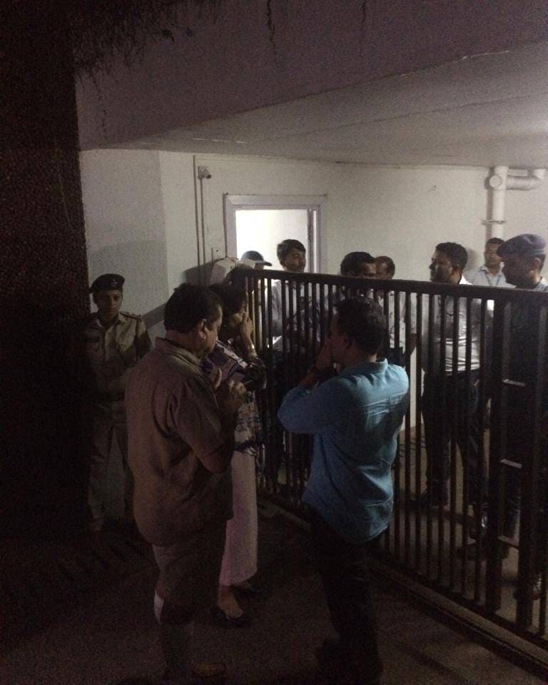 Union minister Shripad Naik not being allowed to enter the gates. Security makes him wait.