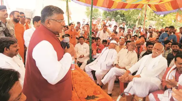 The car reaches Machriyawa under Bakhtiyarpur Assembly segment. Local MLA Ranvijay Singh, known as Lallu Mukhiya, welcomes Prasad. Puttu Yadav, an IIT Kharagpur alumnus who joined the BJP three years ago, walks up and asks Prasad for a selfie. Prasad obliges, saying: “While (RJD chief) Lalu Prasad would oil his lathis, we believe in empowering youths. Puttu is an example.” As the vehicle moves slowly, Prasad accepts greetings and asks people their names.