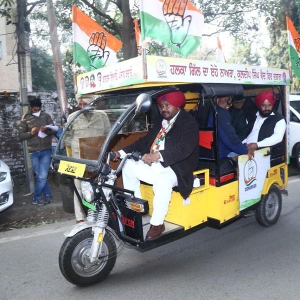 Former IAS officer and Congress candidate from Gill, Kuldip Singh Vaid, rode an e-rickshaw to file his nomination.